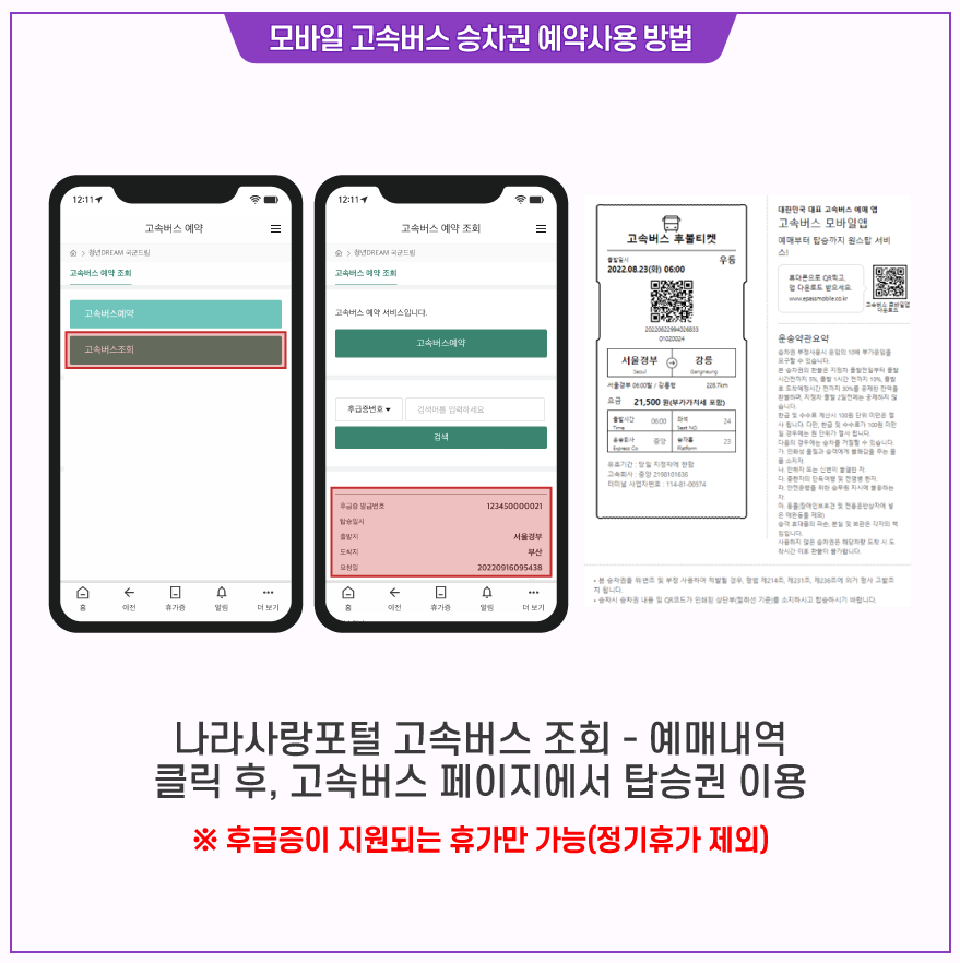 - 고속버스/ 시외버스를 이용하시면 후급증 발급이 필요