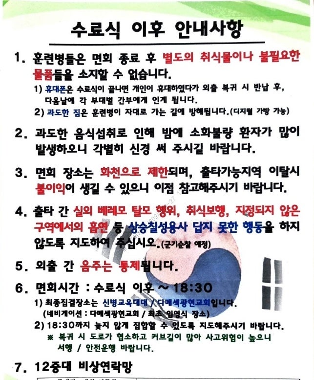 🎉 수료식 종료 후 면회·외출 안내