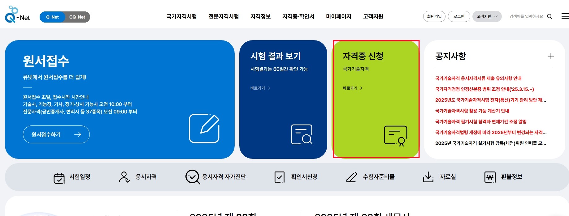 - 자격증 발급: 큐넷에서 상장형 자격증 출력