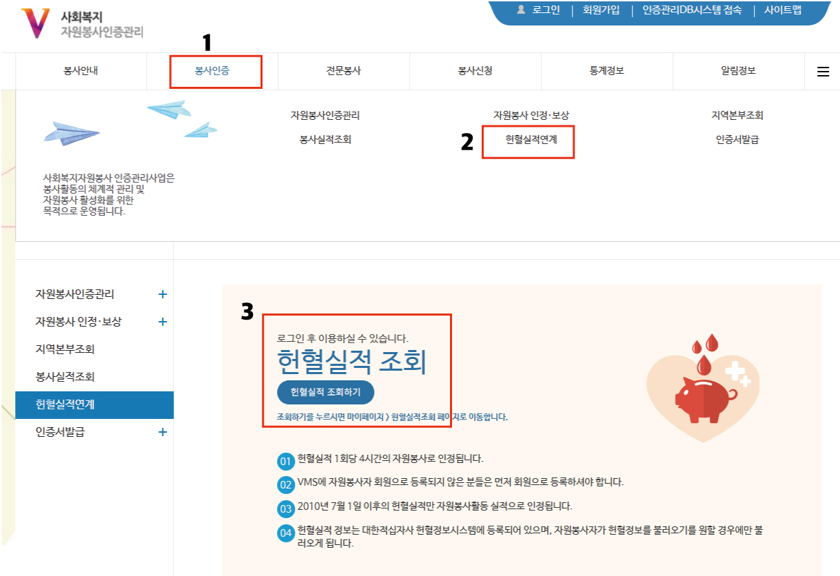 2. 홈> 봉사인증 > 헌혈실적연계