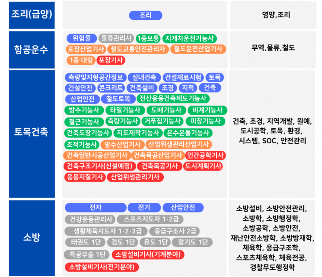 (앞에 놓이는 것은 자격증, 뒤에 놓이는 것은 전공이다.)