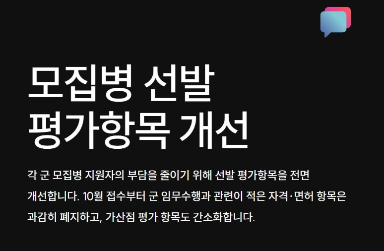 25년 하반기 달라지는 제도 - 공지사항 - 모집안내서비스 - 군지원 안내 - 병무청