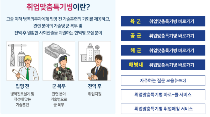 취업맞춤특기병 통합안내 - 군지원 안내 - 병무청