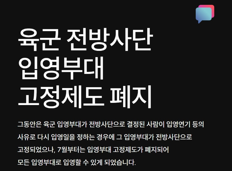 - 기존: 전방사단 입영이 결정되면 입영 연기 시에도 전방부대 고정