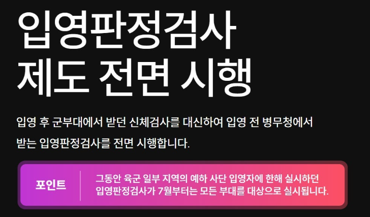 | 입영판정검사 | 일부 사단 입영자만 | 전군 입영자 전면 시행 |
