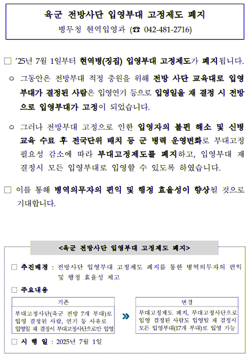 5️⃣ 전방사단 입영부대 고정제도 폐지