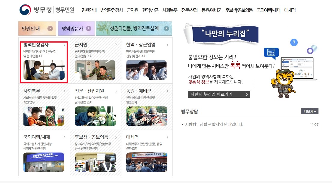 - 검사 전날 오후 6시까지 병무청 홈페이지에서 신청 가능
