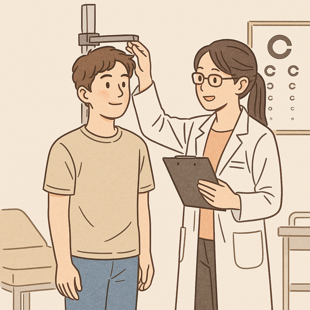 | 시력 | 시력표로 검사(왼쪽→오른쪽), 영상시력측정기 사용 가능 |