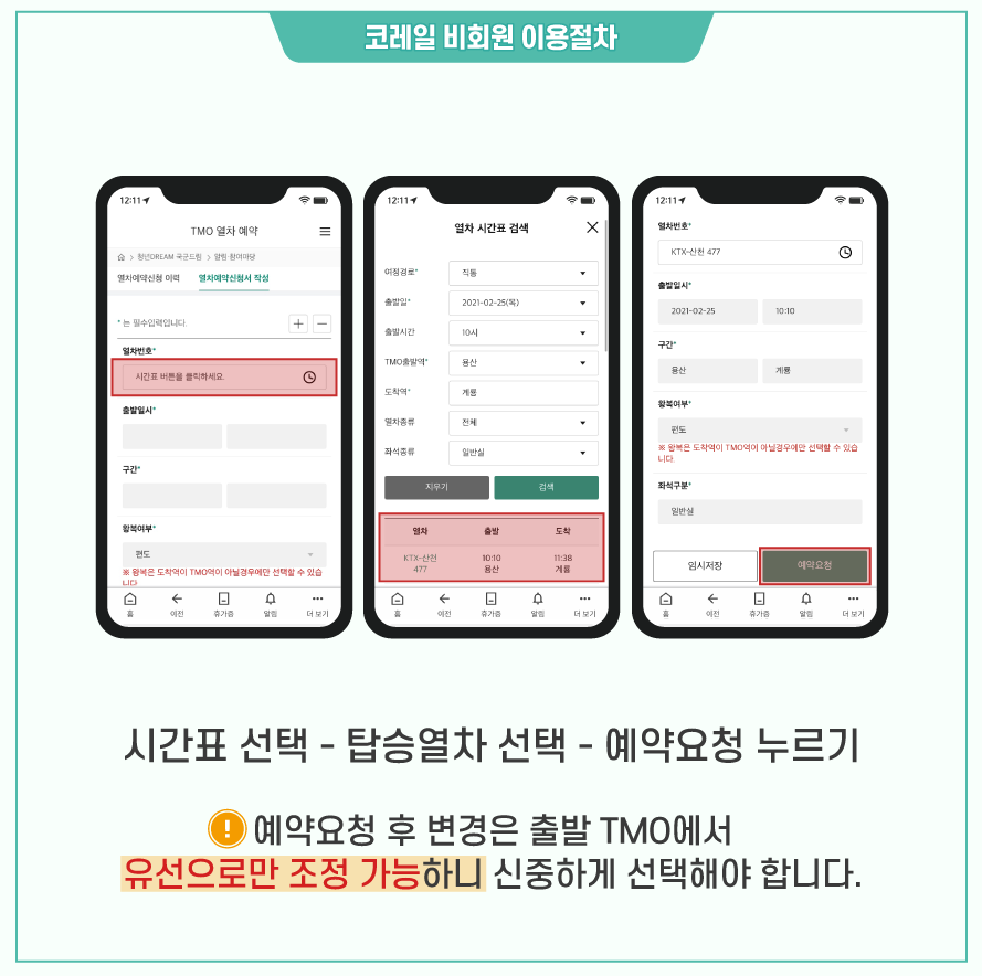 🚄 TMO열차(비회원) 사용법