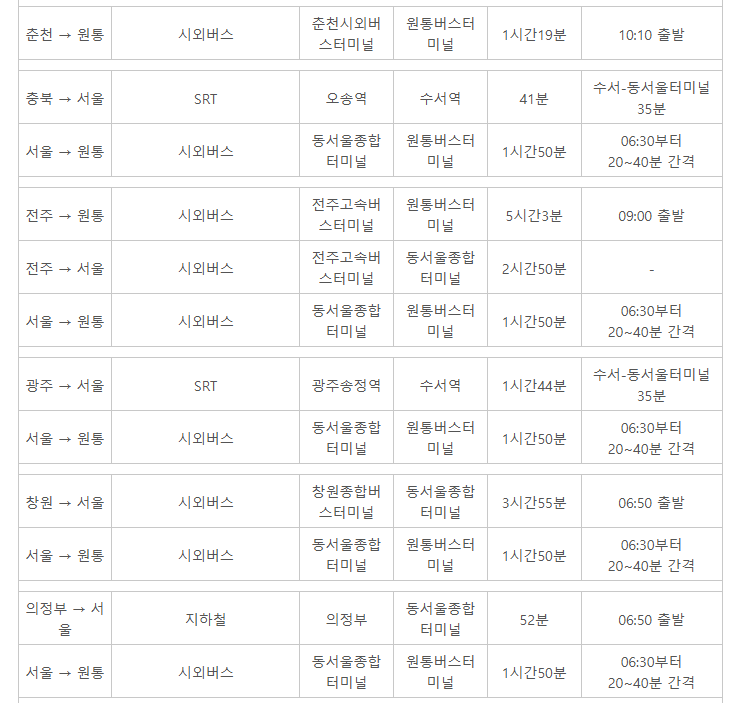 - 속초 → 원통터미널: 약 51분 (30분 간격)