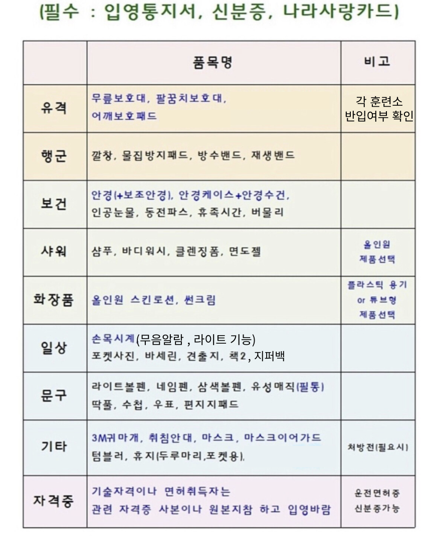✅ 훈련소 준비물 핵심 요약